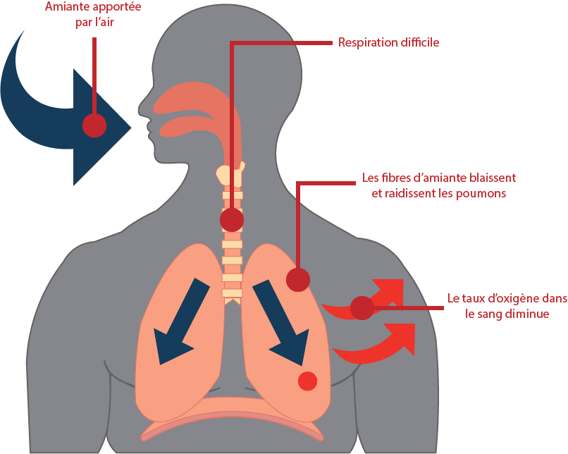 Les fibres présentes dans les poumons provoquent une inflammation du poumon et de la plèvre (tissu enveloppant le poumon).